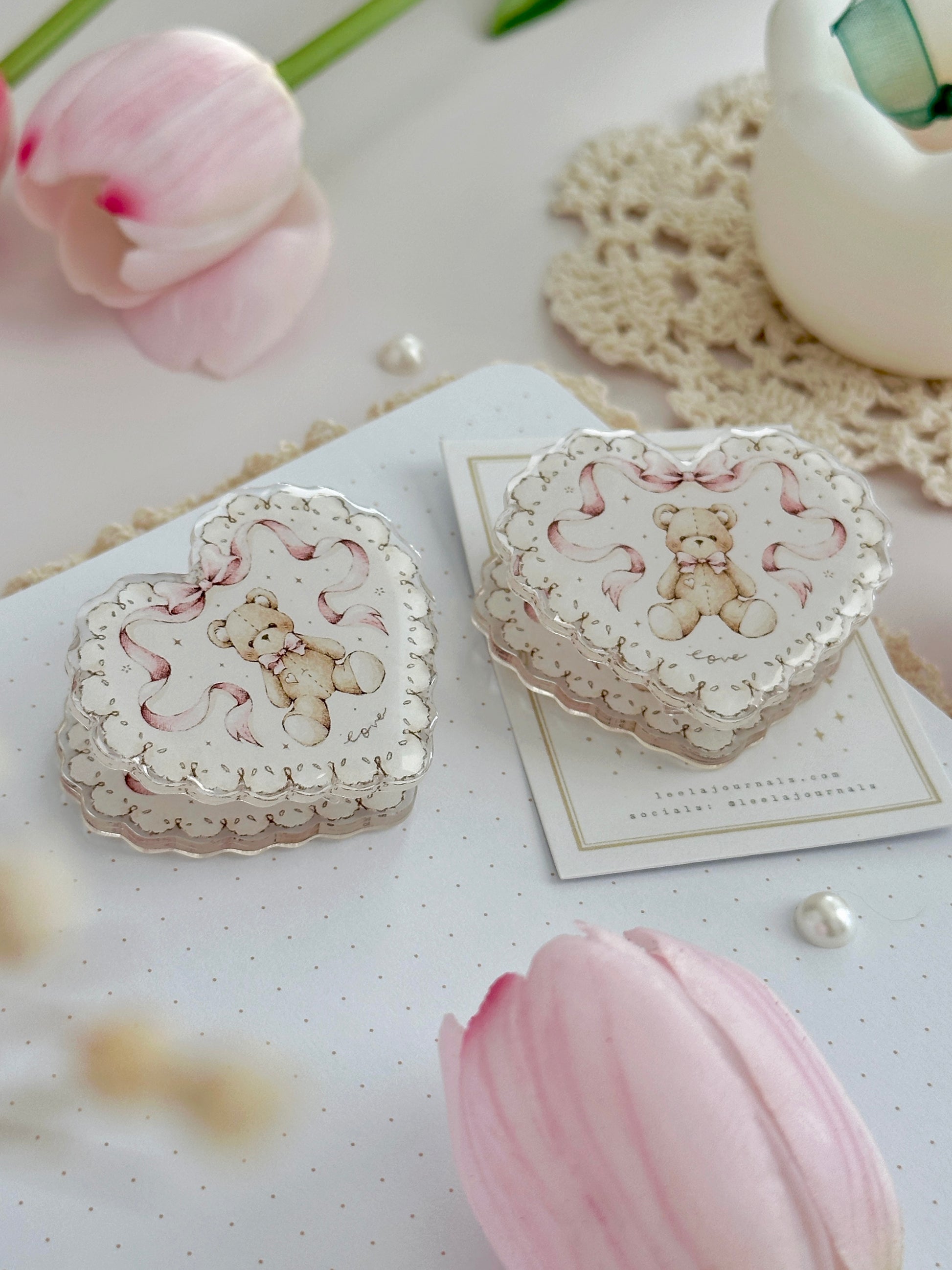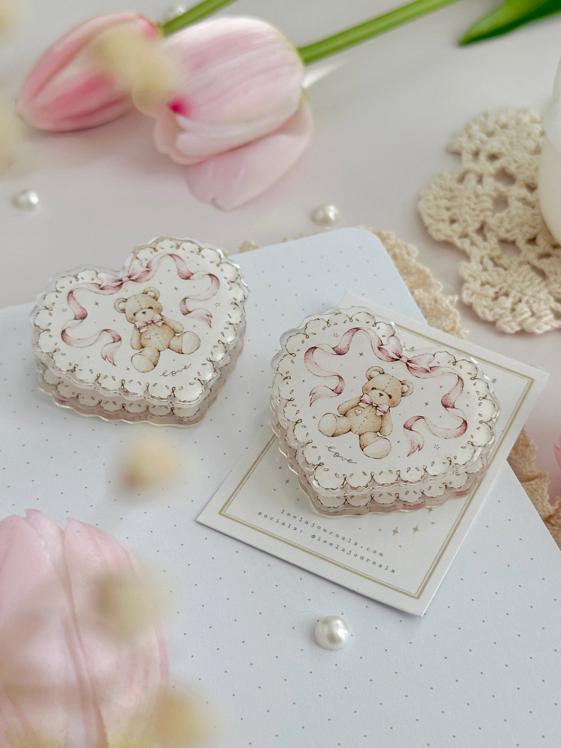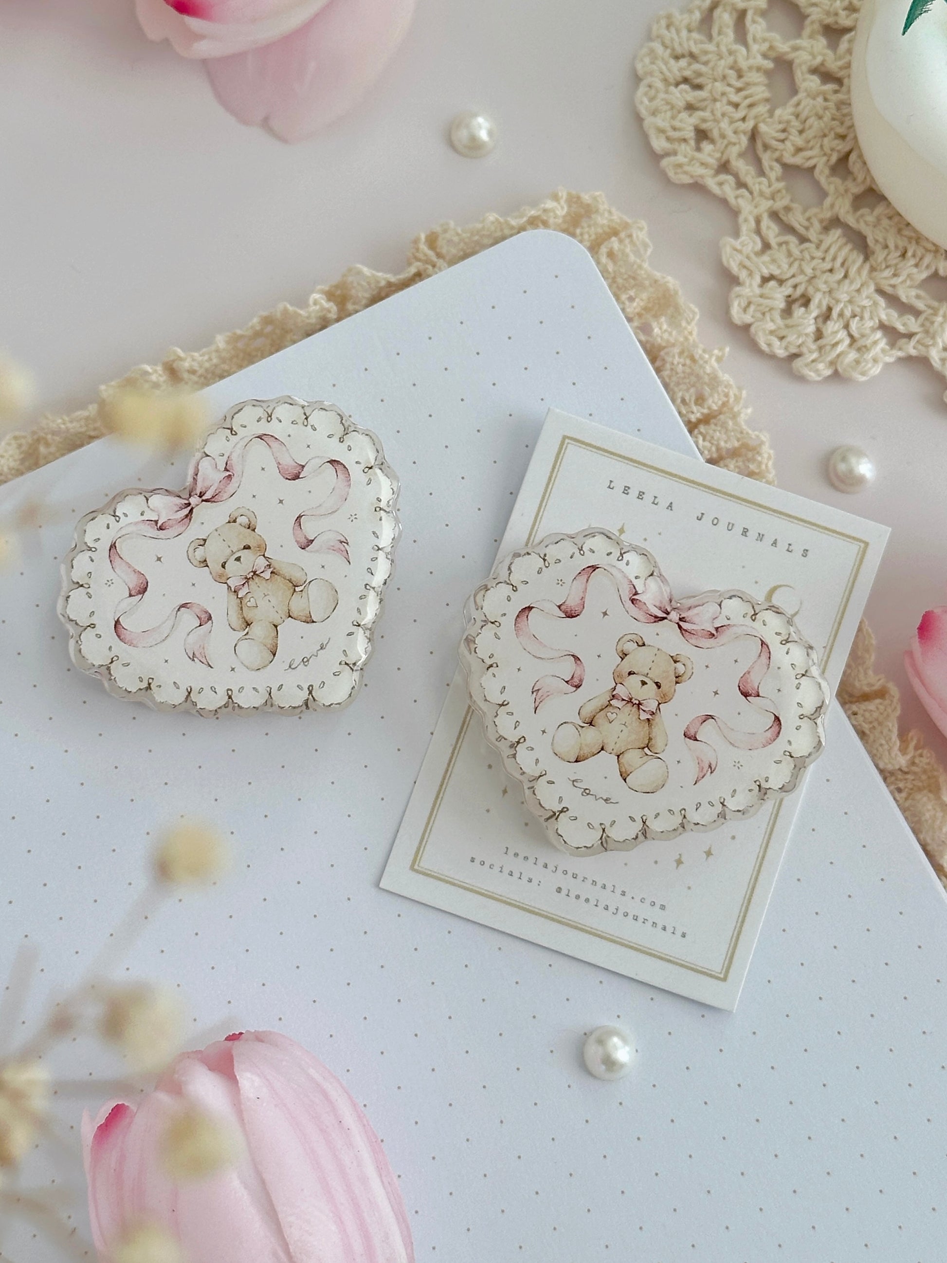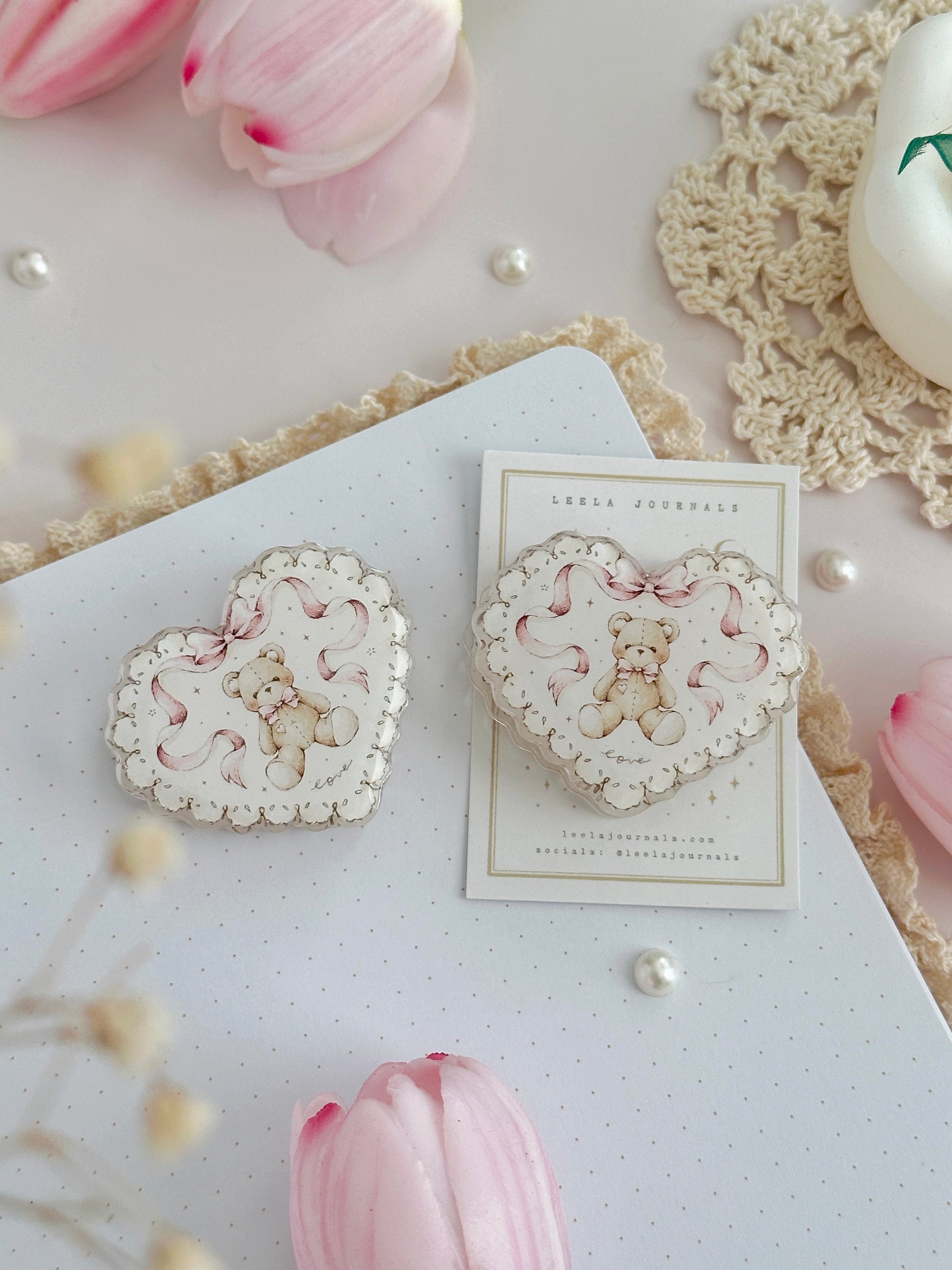 teddy bear doily acrylic clip - cute & cozy little touch for your journals, books, & more. printed on all sides :)